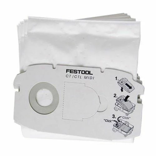 The new self-cleaning filter bags for the CT MIDI dust extractor solves a problem that plagues other dust extractors and vacuums. The Festool filter bag also serves as a pre-filter and is able to trap dust particles down to five millionths of a meter; or 5 microns.